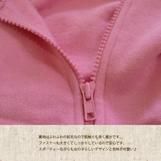 2色使いがぱっと目をひくラグランパーカー。 裏起毛なので、とても暖かです。 女の子らしい細身のラインがキュート!