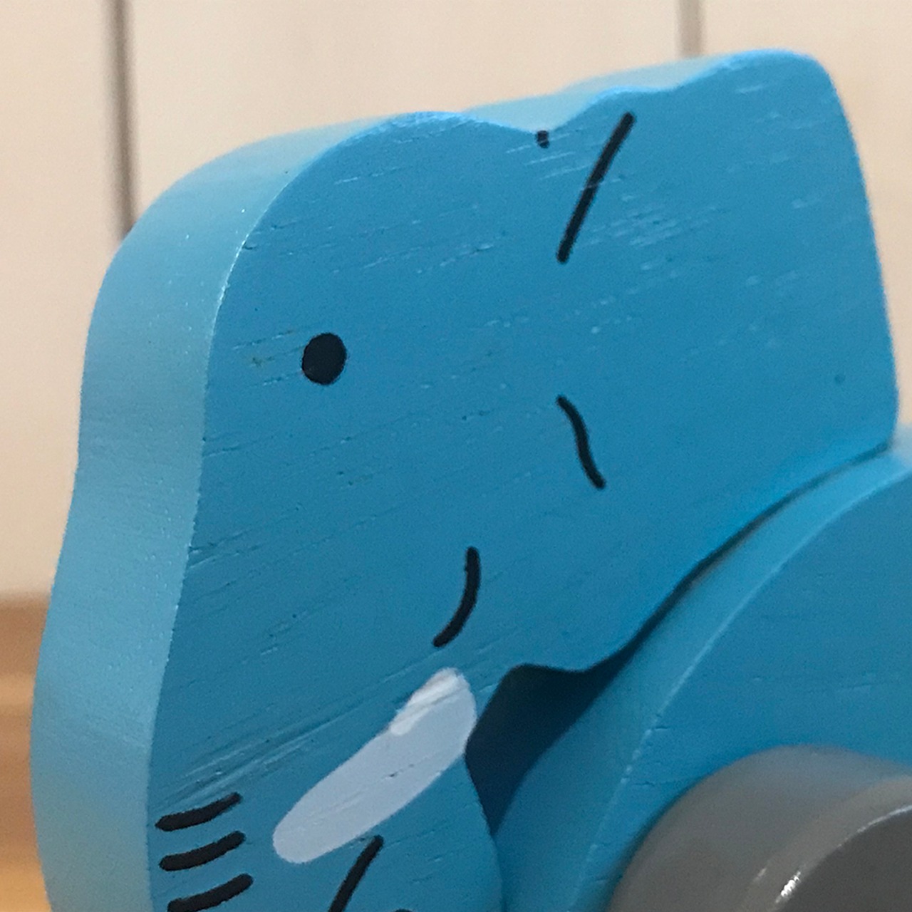 コロコロがついたアニマルのおもちゃ。ひもをつけるとお散歩するようにも遊べます。
