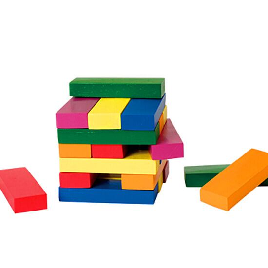 カラフルな積み木を積み上げて、1ピースずつ抜いて遊ぶタワーブリック。
